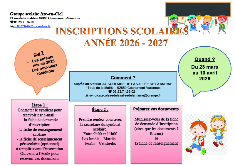 Accueil : > Actualités > Inscriptions scolaires Ecole Arc en Ciel : dernier jour aujourd’hui