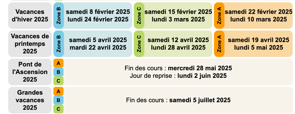 Il est rappelé que les vacances prennent effet après les cours et que nous sommes en Zone B.